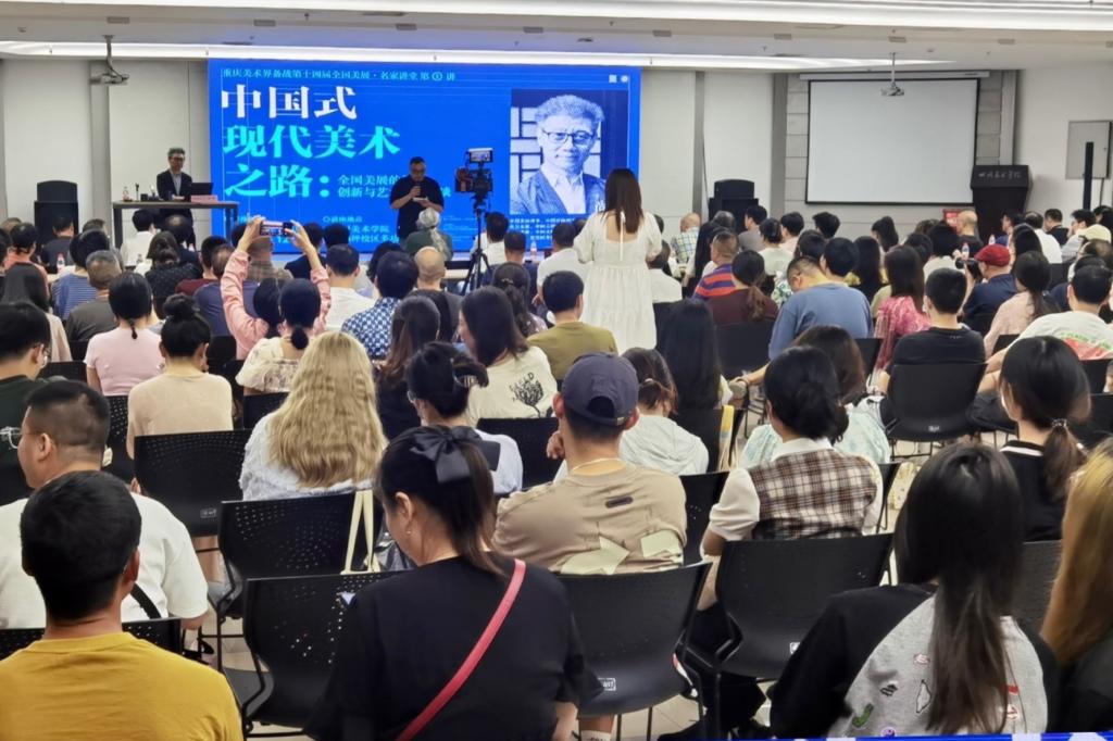 为全面备战第十四届全国美展,重庆美术家协会联合我校共同开展名家系列讲堂。7月2日上午,于黄桷坪校区多功能厅开展了名家讲堂第一讲“中国式现代美术之路——全国美展的题材、创新与艺术探索漫谈”。主讲人为中国美协理事、中国评协理事、中国美协美术理论委员会主任、中国美协第一届国家重大题材美术创作艺委会委员、全国美展评委、博导、中宣部“四个一批人才”、国务院政府特殊津贴专家尚辉。本场讲堂由重庆美术家协会、四川美术学院联合主办,由四川美术学院创作科研处、重庆美术家协会策展与理论艺委会承办,四川美术学院公共艺术学院、半岛美术艺术中心协办。
