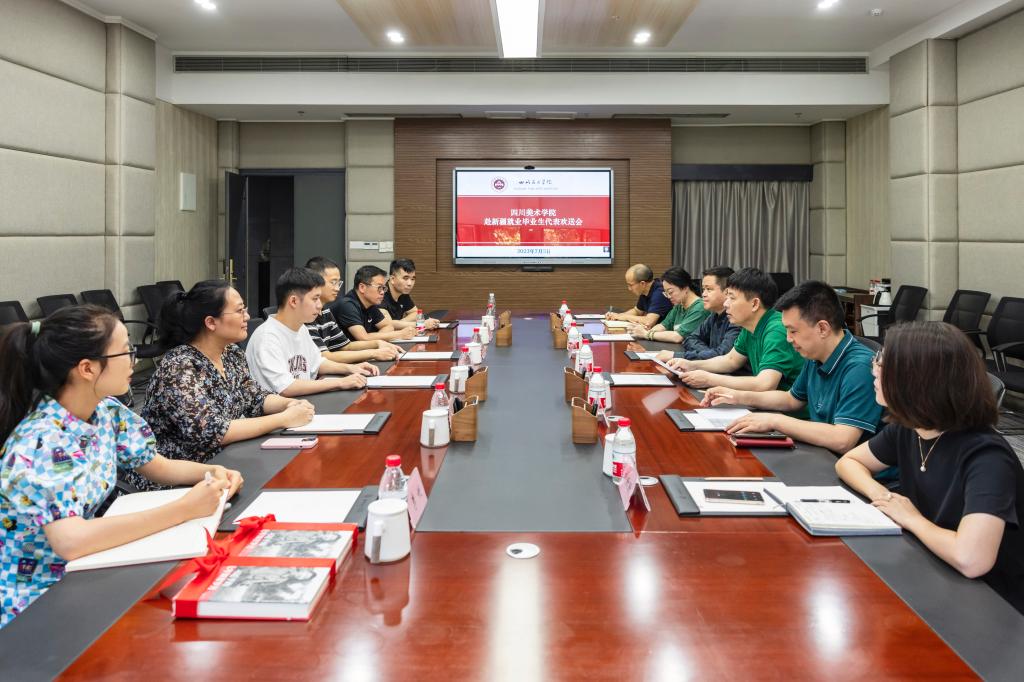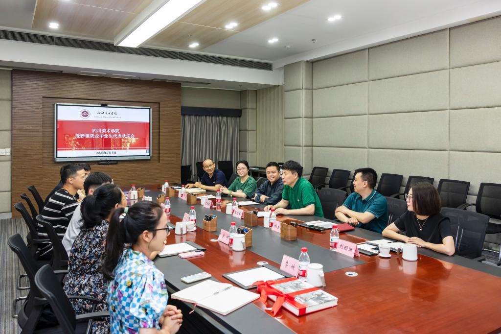 庞茂琨指出,两位同学充分体现了川美毕业生强国建设、民族复兴的青年担当。庞茂琨希望两位同学充分发挥艺术优势和中华美育精神,促进新疆文化事业繁荣和文化产业发展,更好满足新疆人民美好生活的需要;并祝愿两位同学事业有成、生活幸福,成就更为丰满、健全的艺术人生。