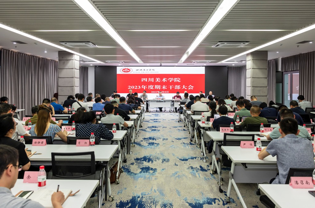 2023年7月8日下午,学校在五会议室召开期末干部大会。党委书记唐青阳、校长庞茂琨出席会议并讲话。全体校领导出席会议。党委副书记左益主持会议。