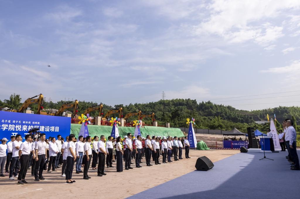 市级有关部门,两江新区、渝北区相关部门,重庆悦来投资集团、中冶建工、中建西南设计研究院、悦来街道相关领导,四川美术学院中层干部代表齐聚仪式现场,共同见证四川美术学院悦来校区建设项目正式开工。