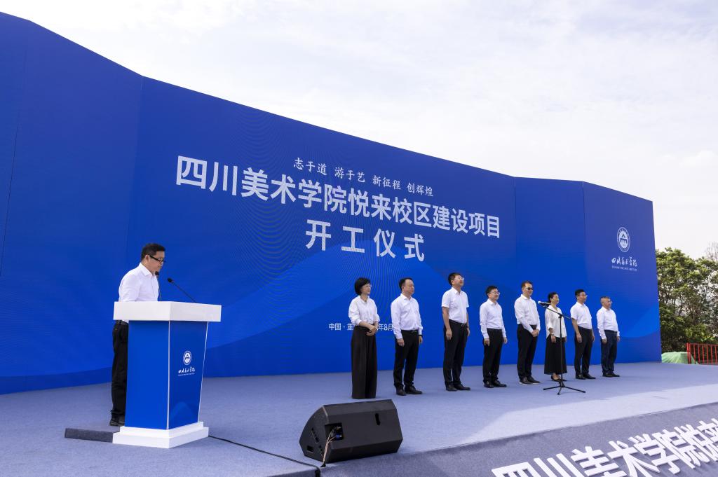 唐青阳致辞指出,四川美术学院建设悦来校区,立足自身学科专业优势,主动对接国家和区域发展战略,服务地方经济社会高质量发展。项目建成后,将使得大批高水平艺术人才入驻两江新区,为两江新区人民的高品质生活注入新的生机与活力。悦来校区建设项目的开工,是川美发展史上里程碑式的盛事,也是全校师生共同期盼的大事。学校将以悦来校区建设为契机,全面落实党的教育方针,落实立德树人根本任务,狠抓内涵建设,提高人才培养质量,积极融入和服务区域经济社会发展,为建设高等教育强国做出新的更大的贡献。