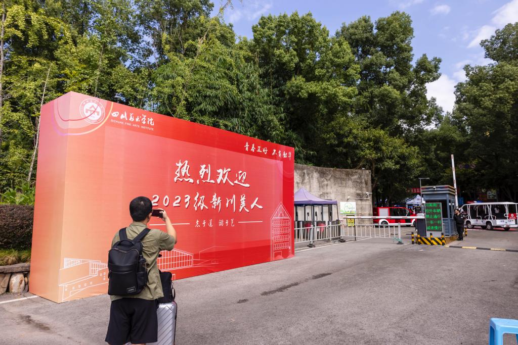 9月14日早8点,阳光轻洒在四川美术学院,学校迎新工作人员、师生志愿者和后勤、安保人员们已经坚守在校园各个点位,欢迎来校报到的2023级新同学们。