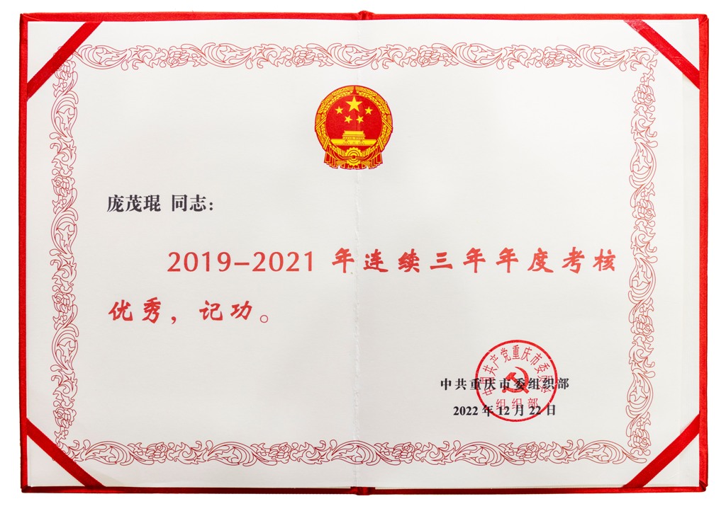 日前,我校党委副书记、校长庞茂琨因在2019-2021年连续三年年度考核优秀,荣获市委组织部记功表彰。