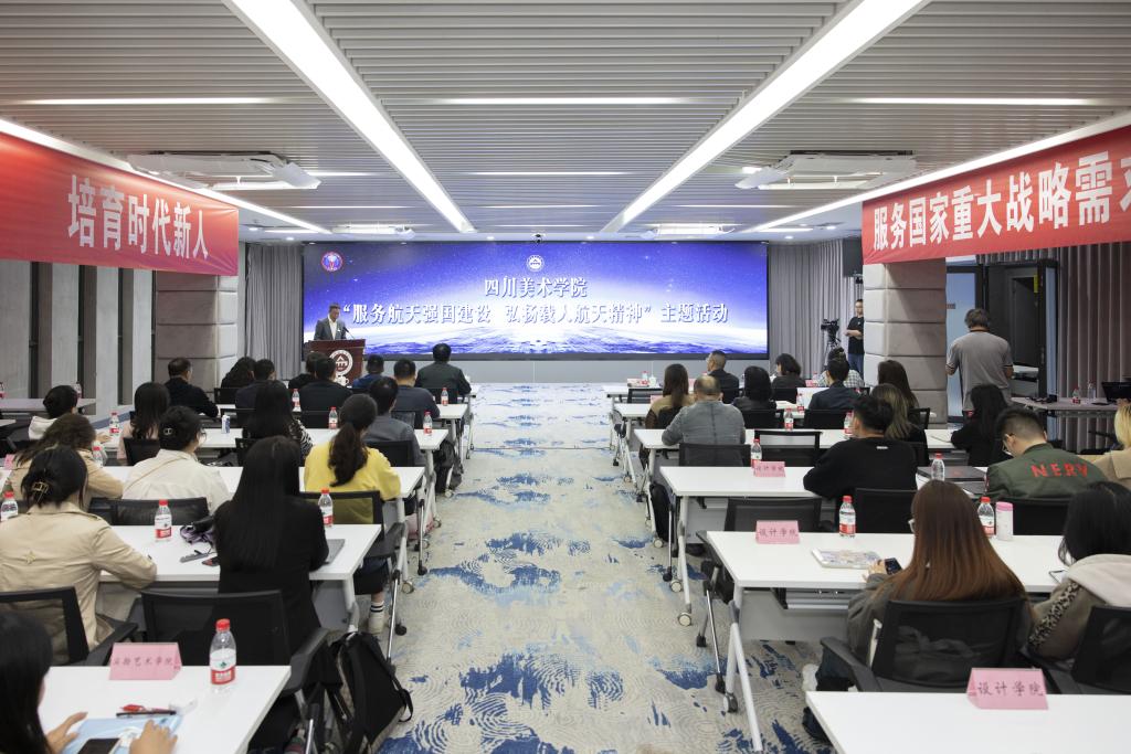 今年是中国首次载人飞行任务成功20周年。为进一步弘扬中国载人航天精神,引导全校师生关注和服务国家重大战略需求,勇担新时代文化使命,10月26日上午,四川美术学院举行“服务航天强国建设 弘扬载人航天精神”主题活动。学校党委常委、副校长段胜峰出席活动并作主旨发言。党委常委、宣传部部长贾安东主持活动。参加航天航空重大设计任务的各项目组师生代表、各二级学院师生代表、相关职能部门负责人参加了主题活动。