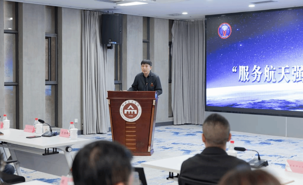 段胜峰作主旨发言。他指出,谭昊瑜的设计作品——神舟十七号载人飞行任务标志,既是学生个人扎实的专业素养和突出的专业能力的集中体现,更是我校长期以来重视科研创作、创新人才培养模式的生动缩影。近年来,我校设计学科突破以传授技能为目标的培养模式,将“以人民为中心”的价值理念熔铸到设计人才培养的全过程,我校学生也更加主动关心国家和社会需求,积极探索设计服务国家重大发展战略、服务人民和社会需求的途径,逐步培养出了一批具有“泥土味”“人民情”“中国心”的人民设计师。四川美术学院将在习近平文化思想的引领下,继续弘扬载人航天精神,用更多优秀的作品为我国航天事业的永续发展提供源源不断的设计力量,为实现中华民族伟大复兴贡献川美智慧和力量。