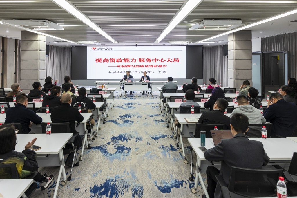 为高质量推进“凝心铸魂强根基、团结奋进新征程”主题教育走深走实,切实提高统战成员参政议政工作水平和反映社情民意能力,11月23日下午,党委统战部举办提升参政议政能力专题培训。重庆市委党校副校长尹博应邀作“提高资政能力、服务中心大局”专题讲座。学校统一战线成员、统一战线工作领导小组成员、二级党组织统战委员等参加。党委常委、副校长张勇华主持。
