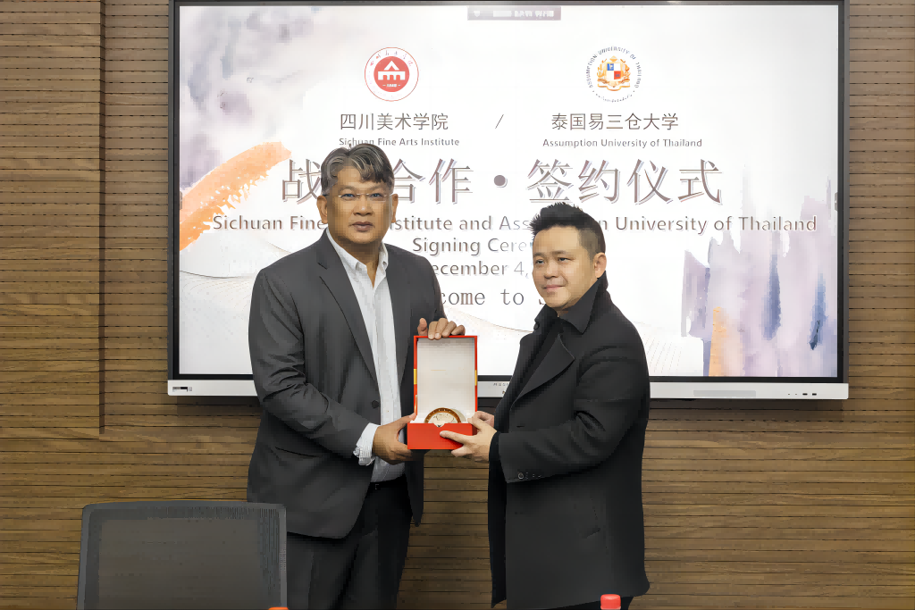 泰国易三仓大学一行还参观了四川美术学院美术馆与实验教学管理中心,并在艺术人文学院举行了博导聘任仪式。此次两校顺利达成战略合作关系为中泰两国学术界搭建更为紧密的桥梁,促进文化、艺术的繁荣,使中泰友好关系在艺术领域迸发更多的火花。