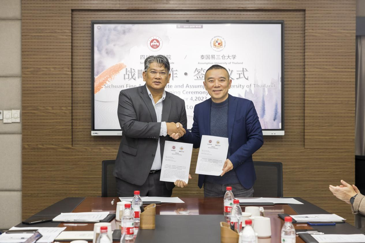 焦兴涛代表四川美术学院与泰国易三仓大学签约。