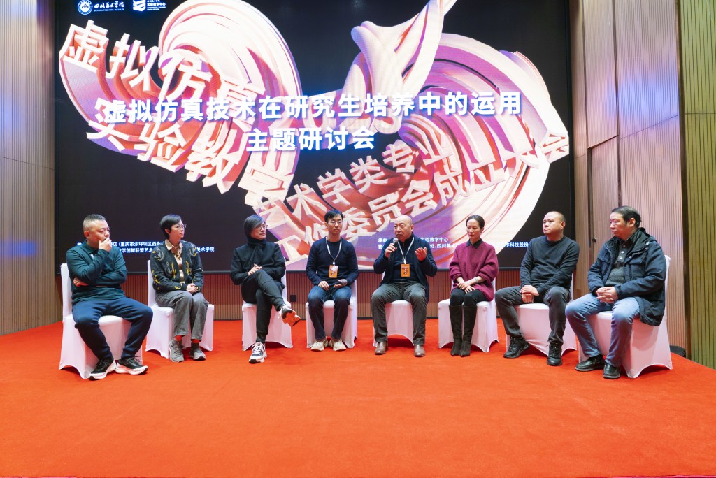 “虚拟仿真技术在研究生培养中的运用”主题研讨会由张威等8位嘉宾开展对话。论坛及研讨会由潘召南,中国人民大学艺术学院数字媒体艺术教研室主任葛勇,专委会副秘书长、四川美术学院实验教学中心副主任汪泳主持。