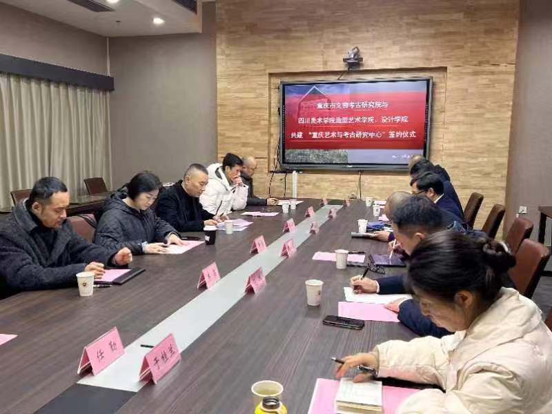 重庆市文物考古研究院与四川美术学院造型艺术学院、设计学院三方共同签署了《重庆市文物考古研究院、四川美术学院造型艺术学院、四川美术学院设计学院合作框架协议》并合影。
