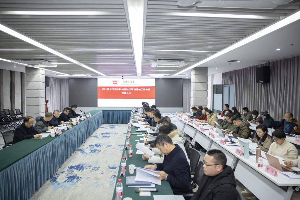 教务处负责人就《四川美术学院本科教育教学审核评估工作方案》的重要内容向会议进行专题汇报,主要内容包括成立审核评估工作领导小组,成立评建办公室,确定各评建专项工作组工作职责,确定督查工作组工作职责,确定各阶段工作安排等。
