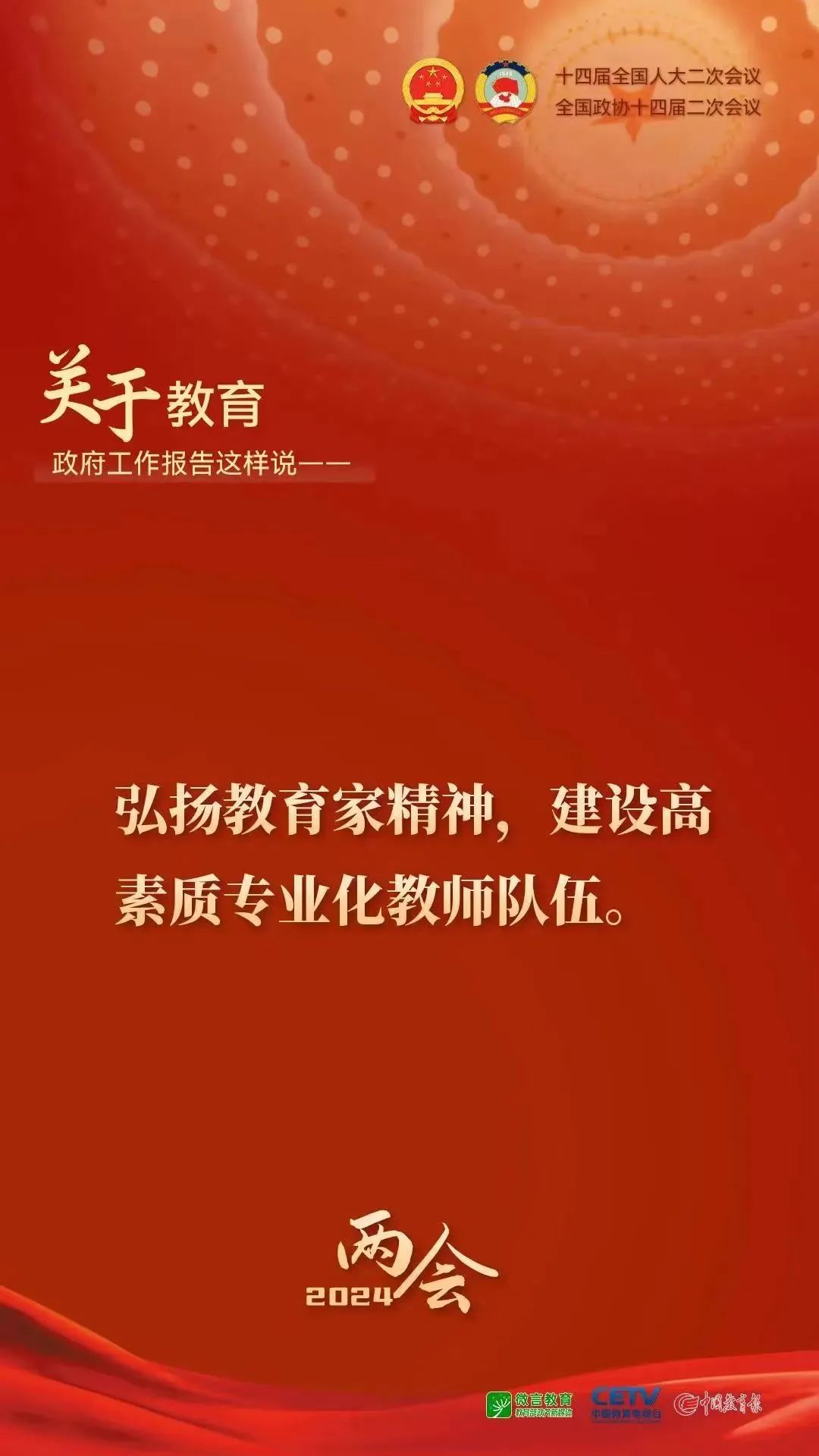 政府工作报告提出,深入实施科教兴国战略,强化高质量发展的基础支撑。坚持教育强国、科技强国、人才强国建设一体统筹推进,创新链产业链资金链人才链一体部署实施,深化教育科技人才综合改革,为现代化建设提供强大动力。