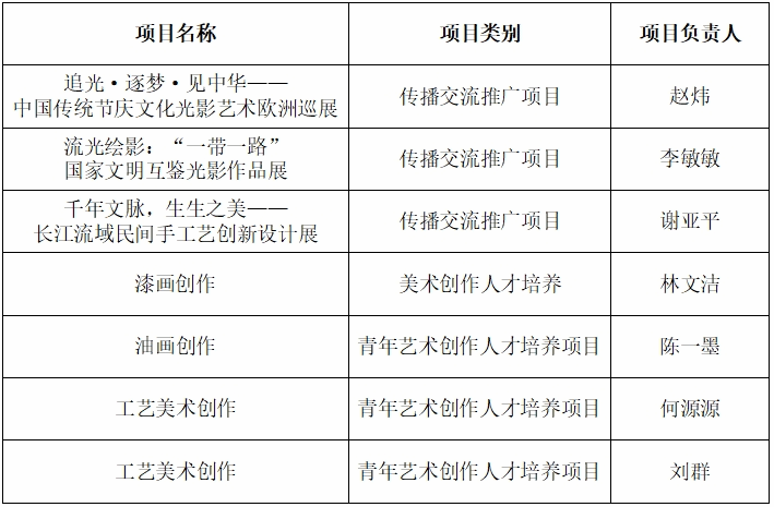 近日,国家艺术基金管理中心公布了国家艺术基金2024年资助项目立项名单,我校喜获7项国家艺术基金项目立项。其中包括国际传播交流推广项目1项,国内传播交流推广项目2项,美术创作人才培养项目1项,青年艺术创作人才培养3项。