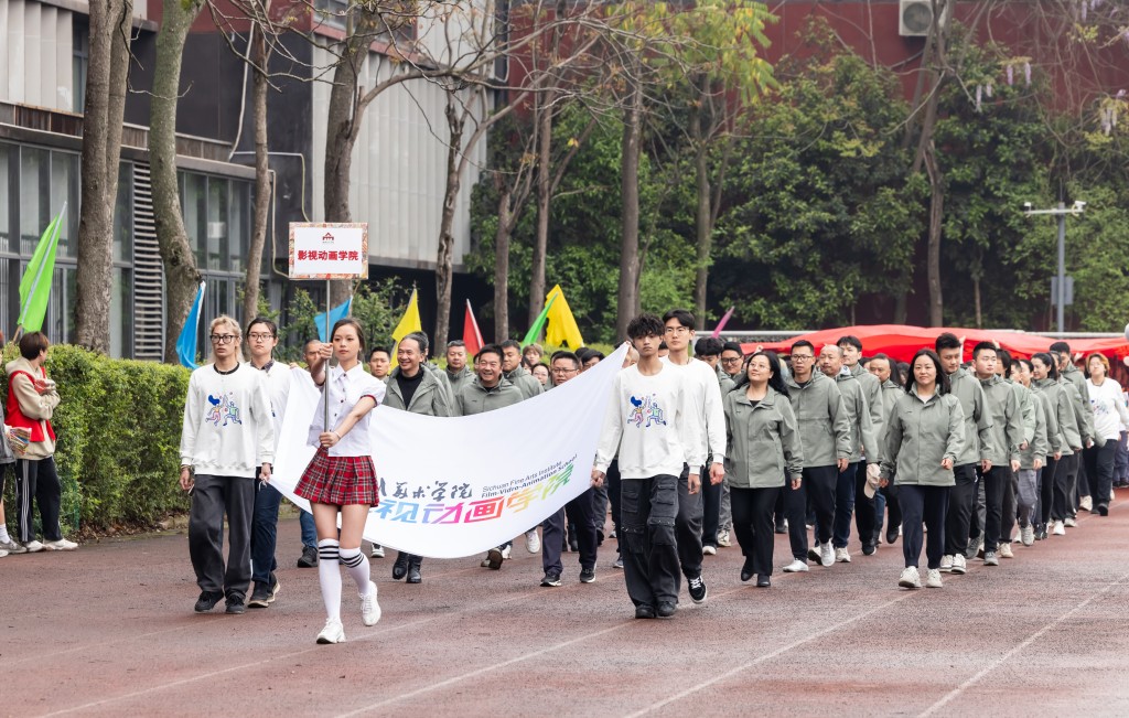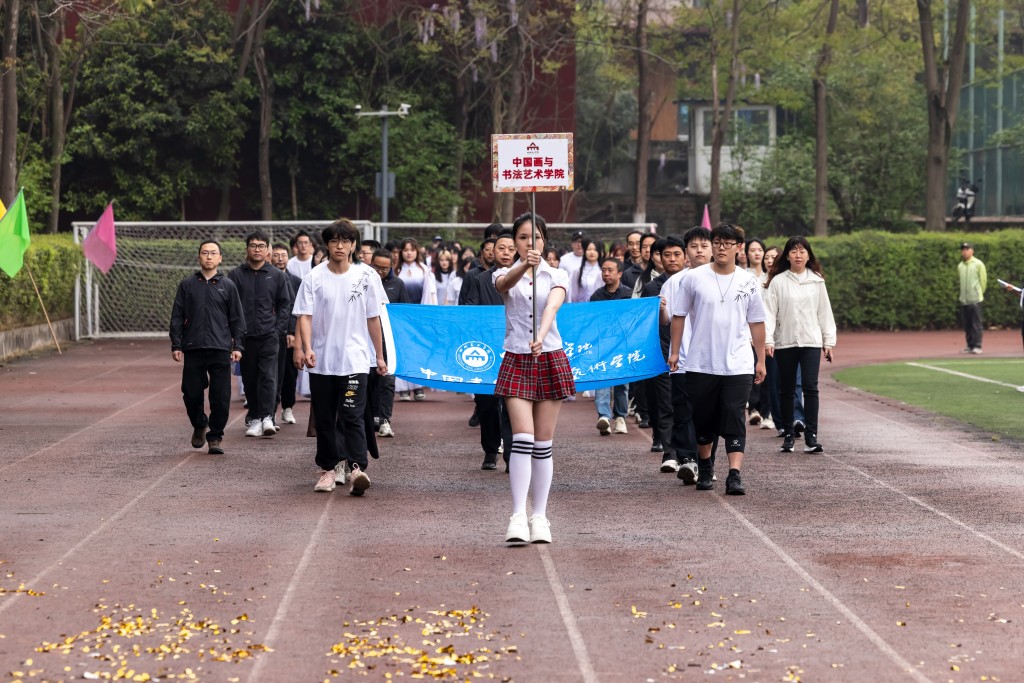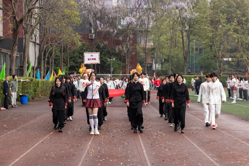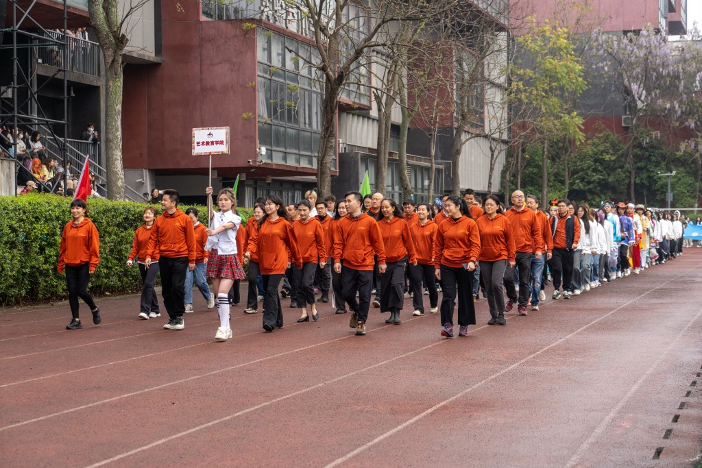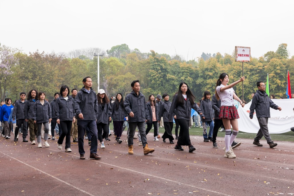 携手并进,踔厉奋发,团结拼搏,共创一流。由机关党委、通识学院、马克思主义学院和美育学院组成的教职工方阵走过主席台。他们活力满满、斗志昂扬,用坚定的步伐、满腔的热忱、灿烂的微笑展现了教师队伍的团结进取、奋勇争先。