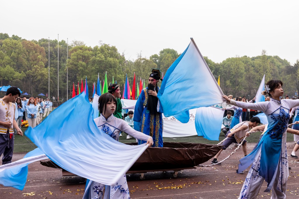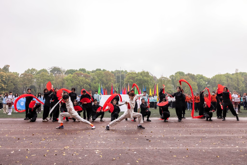 风鹏正举,春风渐酣。设计学院带着气势雄浑的国风集体舞上场。学生们身姿矫健,每一个转身、每一个跳跃都充满了力量与美感,既有传统的韵味,又不失现代的创意,以坚毅步伐舞出了意气风发,用激情能量汇聚成耀眼的光芒。