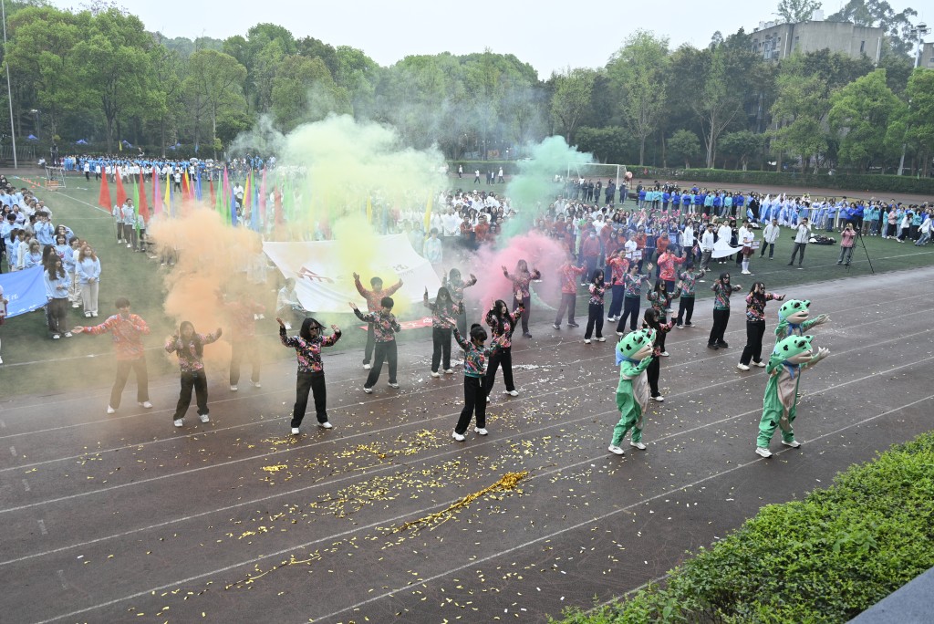 3月28日上午,2024年活力校园春季运动会在我校虎溪校区运动场拉开帷幕。入场式上,各方阵逐一亮相、带来了别开生面的视觉艺术盛宴,独具艺术范儿的创意表演令现场师生啧啧赞叹、大饱眼福。