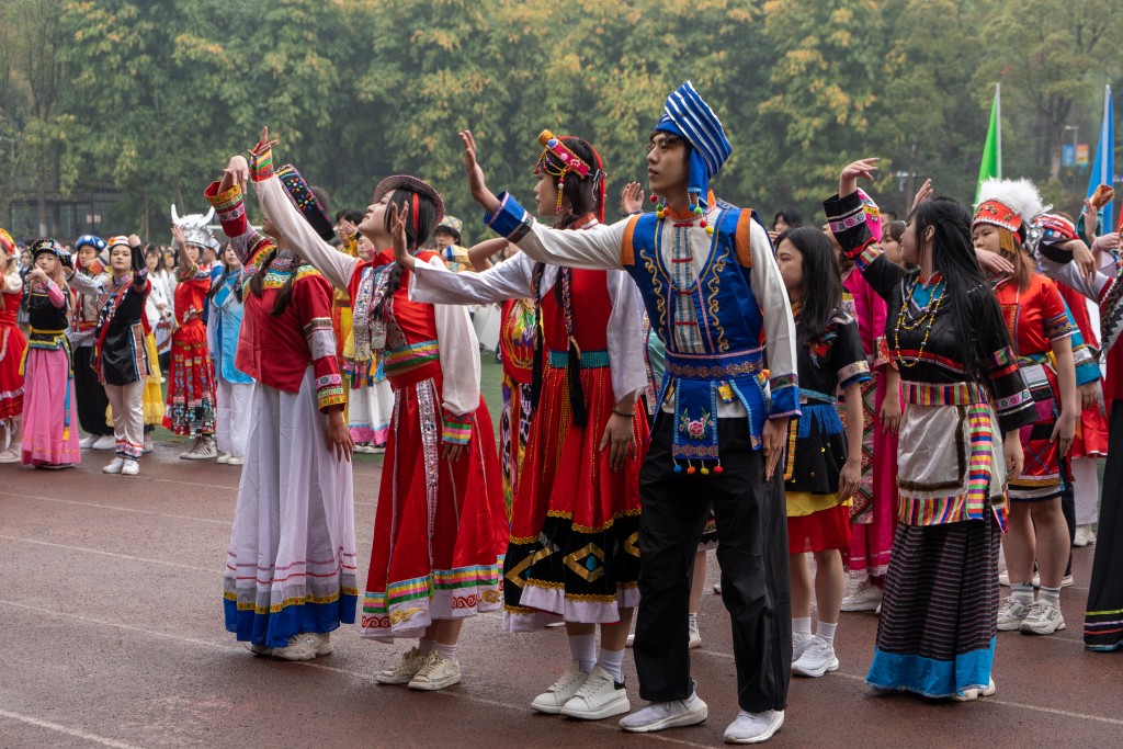 大鹏一日同风起,扶摇直上九万里。实验艺术学院以民间舞形式展现了川渝民俗,“一叶扁舟渡三峡”的造景如身临其境,意有“长风破浪会有时,直挂云帆济沧海”的情怀,绸舞起,山歌唱,共迎新时代,彰显出民族文化在传承保护、创新交融中的蓬勃生命力,以及各民族同心筑梦的强大凝聚力。