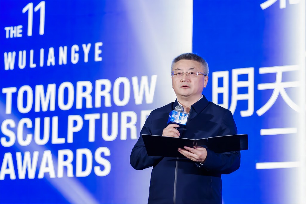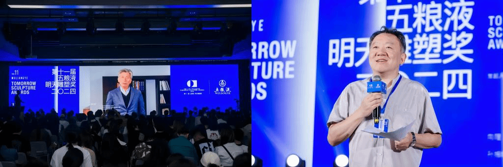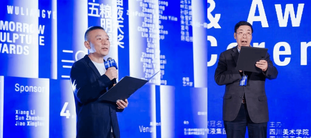 中国美术家协会主席范迪安发来祝贺VCR,终评评委孙振华为演讲秀作总结,学校副校长焦兴涛主持演讲秀并宣布“明天雕塑奖”年度奖获奖名单,终评评委殷双喜宣布年度大奖获奖艺术家。