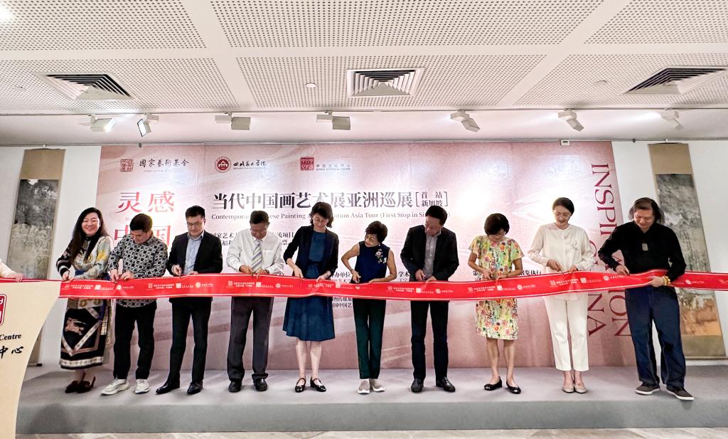 4月18日,由四川美术学院与国家艺术基金资助、新加坡中国文化中心联合主办的“灵感中国——当代中国画艺术国际巡展”在新加坡中国文化中心开幕。四川美术学院校长庞茂琨视频致辞,新加坡中国文化中心理事、新加坡南洋艺术学院董事会主席刘心玲,新加坡南洋艺术学院院长苏惠兰,新加坡艺术总会会长、书法家协会会长陈声桂,中国驻新加坡大使馆文化参赞秦文,新加坡中国文化中心兼旅游办事处主任肖江华,新加坡中国文化中心理事会主席、副主任孔媛,以及来自中新两国艺术界的专家、学者、爱好者们共百余人出席了开幕式。