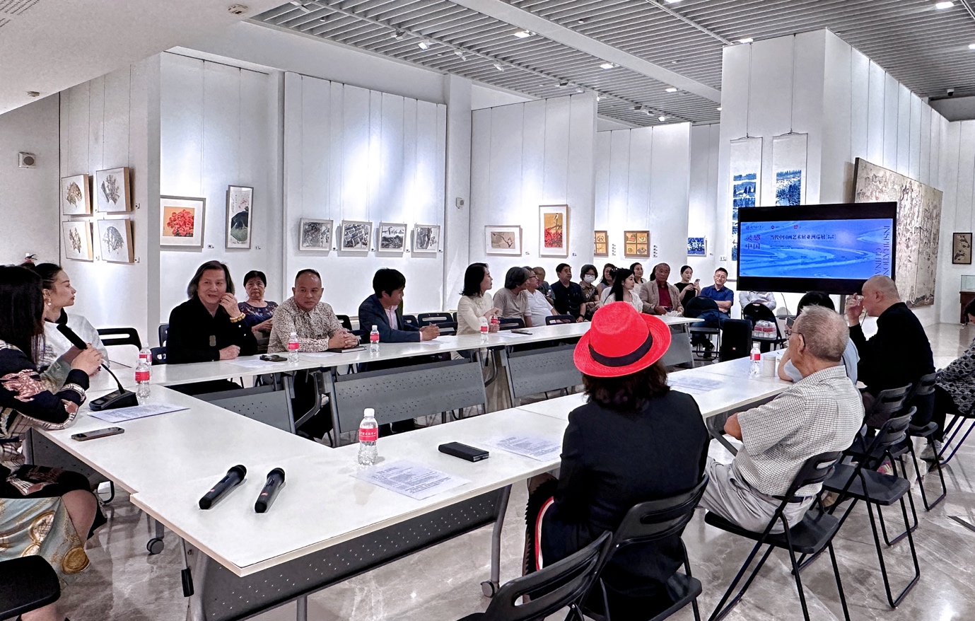 开幕式当天以“中国和新加坡视角下当代中国画艺术的发展与影响力”为主题的研讨会在中心展厅举办,四川美术学院中国画与书法艺术学院副教授、策展人张湸主持研讨会,中国艺术家郑鹤芝、路琼、刘慧、赵媛媛、张洁、屈云以及新加坡艺术家林家雄、林保德、洪捷等20余名嘉宾出席研讨会现场,中国艺术家韩璐、周石峰、尹志晖线上参与研讨会。中新两国的艺术家们围绕个人对中国画的创作理念和经验展开分享,深度探索当代中国画艺术的发展之路。
