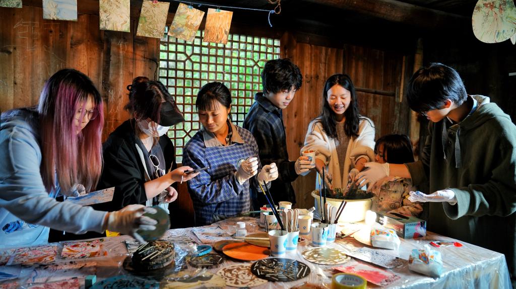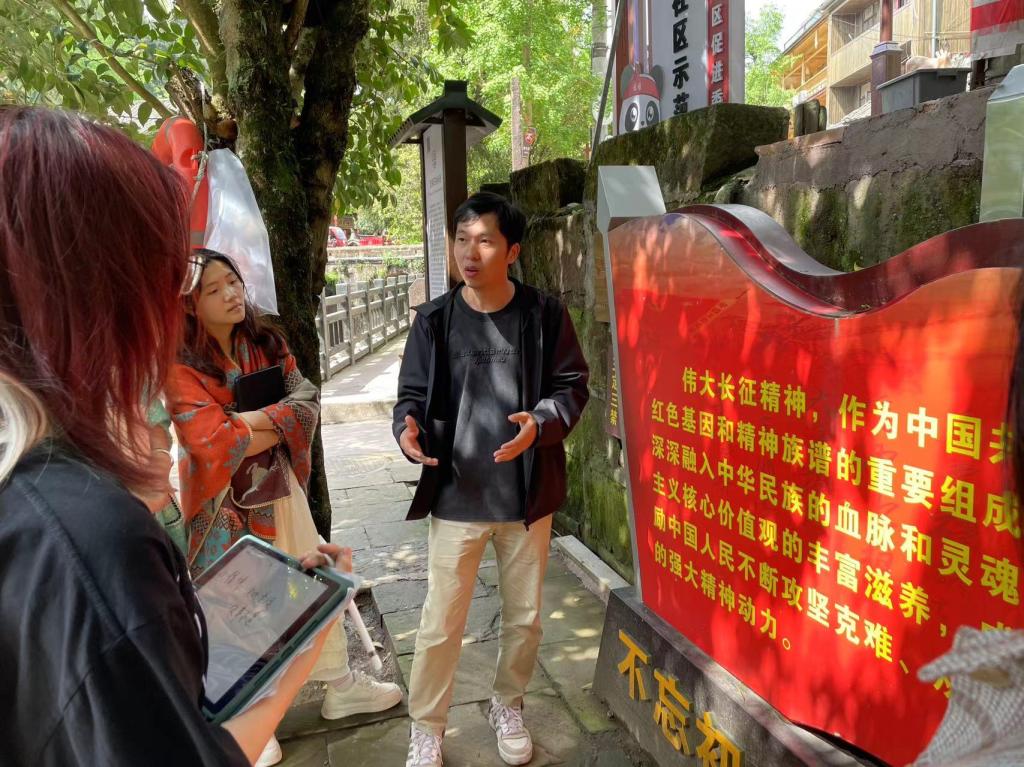 与此同时,学校另外10支外出实践教学“大思政”工作坊队伍,也正在祖国各处挥毫泼墨、笔走龙蛇。从长征路上的贵州遵义、四川上里,到各民族共生共融的边疆村落;从打造和美乡村的重庆酉阳,到传承非遗文化的云南鹤庆;从陶行知建立育才学校的重庆合川,到历代文人咏颂的四川峨眉……每到一处,教师在原有写生、采风等专业能力培养的基础上,引导学生聚焦红色文化、生态文明、传统村落、文化传承、乡村教育、养老服务等现实内容,拓展社会服务面向。今年,学校的“大思政”工作坊团队还设计了考察报告、影像记录、生活劳动、艺术展演等多层面、多维度、多形式的课程作业,使实践教学成为为所在地区提供艺术活动和艺术服务的纽带。学生在思政课教师与专业课教师共同搭建的教育资源环境之中,从思政角度提炼出“专业”性的见解,从专业角度深化了“思政”性的见识,把思政要素转化为艺术创作的动力源泉。