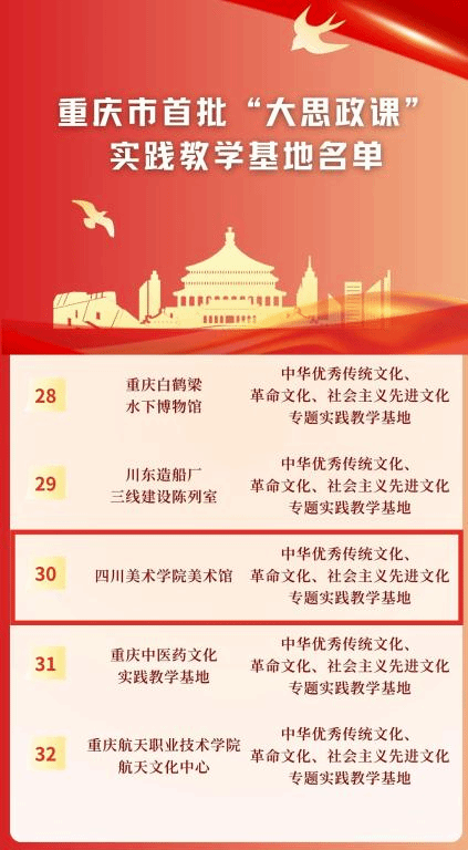 川美是重庆文化的“金名片”,学校将在积极构建“大思政课”育人格局中去擦亮这张“金名片”,推动学科建设与城市发展同步,推动人才培养与时代发展同行,在强市、强国、强党的道路上进一步发挥出“川美力量”。