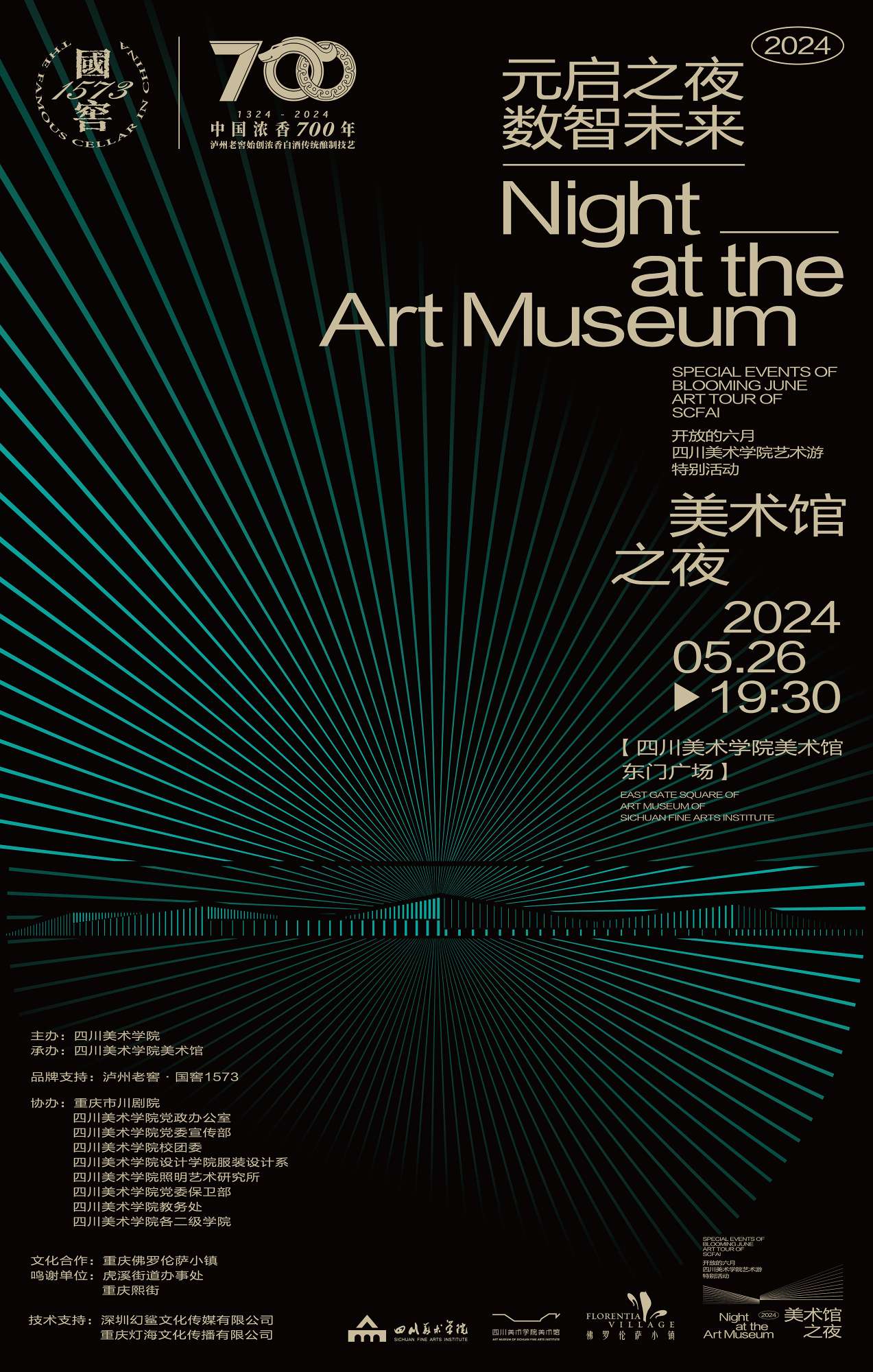 本届“美术馆之夜”主题为“元启之夜•数智未来”。作为擦亮四川美术学院“金名片”的窗口,学校美术馆致力于生长为城市发展的新引擎、知识生产的输出器以及跨界品牌的聚集地。今年起,美术馆将与国窖1573共同开启“艺术×”品牌合作项目的深度合作,以共赴文化美好之约、同促艺术融合发展。