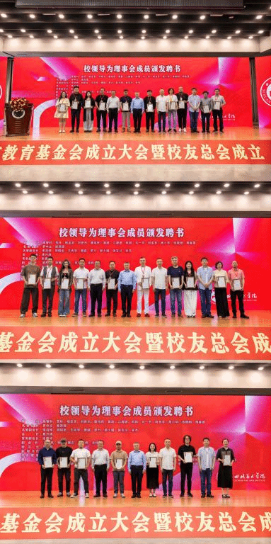 唐青阳、焦兴涛、左益、段胜峰为校友总会理事会成员颁发了聘书。