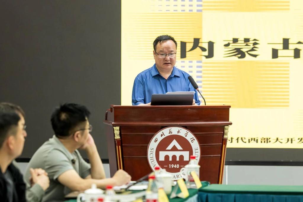 内蒙古艺术学院党委副书记、校长赵海忠致辞,赵海忠指出,内蒙古艺术学院作为联盟中的综合性高等艺术院校将积极为新时代西部大开发贡献力量。