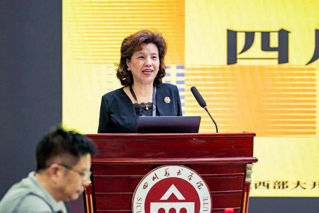 四川音乐学院党委书记文云英代表西部艺术院校致辞。文云英强调联盟的成立为西部高校艺术学发展搭建学术研究平台,聚合学术研究力量。