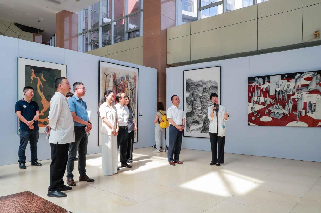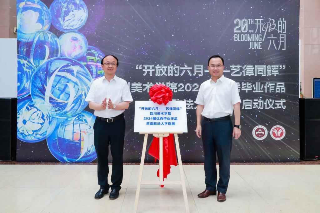 6月13日,“开放的六月——艺律同辉”四川美术学院2024届优秀毕业作品西南政法大学巡展在该校渝北校区举办启动仪式。西南政法大学党委副书记、校长林维,四川美术学院党委常委、副院长张勇华出席。四川美术学院党委常委、党委宣传部部长贾安东以及川美教务处、美术馆、中国画与书法艺术学院负责人,西南政法大学党委宣传部、教务处、图书馆、校团委等职能部门的负责人,两校师生代表等参加活动,启动仪式由西南政法大学党委副书记刘革主持。