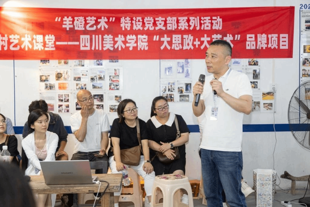 “乡村艺术课堂”是四川美术学院羊磴特设党支部于2024年6月起在贵州羊磴组织策划的“大思政课”,也是四川美术学院品牌项目之一。乡村艺术课堂主要采取名师讲座的方式展开,每月在贵州羊磴当地开设一场专题性公开课堂,内容以“乡村艺术”为探讨核心,针对新时代中国乡村发展所面临的切实问题展开,并与2024羊磴“乡土而新奇”艺术乡场活动联动且持续进行。