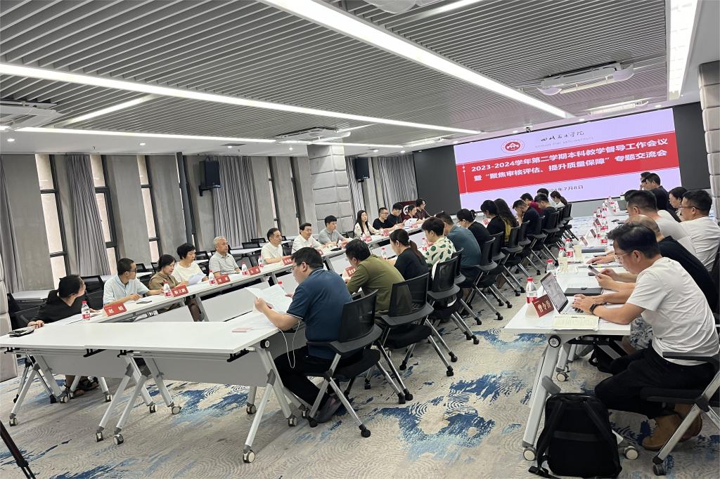 7月8日下午,学校在虎溪校区五会议室召开2023-2024学年第二学期本科教学督导工作会议。来校作本科教育教学审核评估专题报告的国家督学、国家教学名师李志义教授到会指导。四川美术学院副院长段胜峰出席,学校教务处负责人,校级本科教学督导委员会委员、校级督导员,二级学院教学督导委员会主任和副主任委员、督导秘书参会。