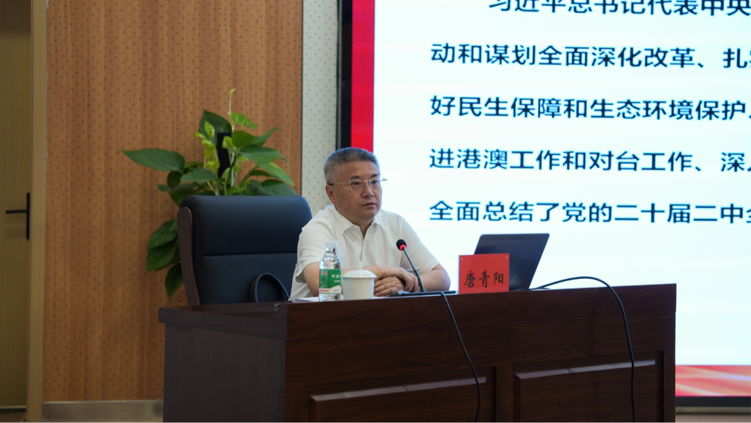 唐青阳结合党中央部署和市委要求,从党的二十届三中全会召开的重要意义,深入学习领会习近平总书记在党的二十届三中全会上的重要讲话精神,全面准确理解《决定》提出的进一步全面深化改革的重大举措,贯通学习习近平总书记对重庆改革工作的系列重要指示要求、加快打造全面深化改革先行区,全力以赴抓好全会精神贯彻落实等方面,对党的二十届三中全会精神进行了系统、深入的解读,为市工会党员干部全面理解和准确把握全会精神丰富内涵、实质要义提供指导。