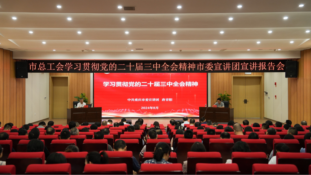 8月26日,学习贯彻党的二十届三中全会精神市委宣讲团宣讲报告会走进重庆市总工会。市委宣讲团成员、四川美术学院党委书记唐青阳作宣讲报告,市总工会党组书记、副主席余季平主持会议并讲话。市总工会全体人员参加学习。