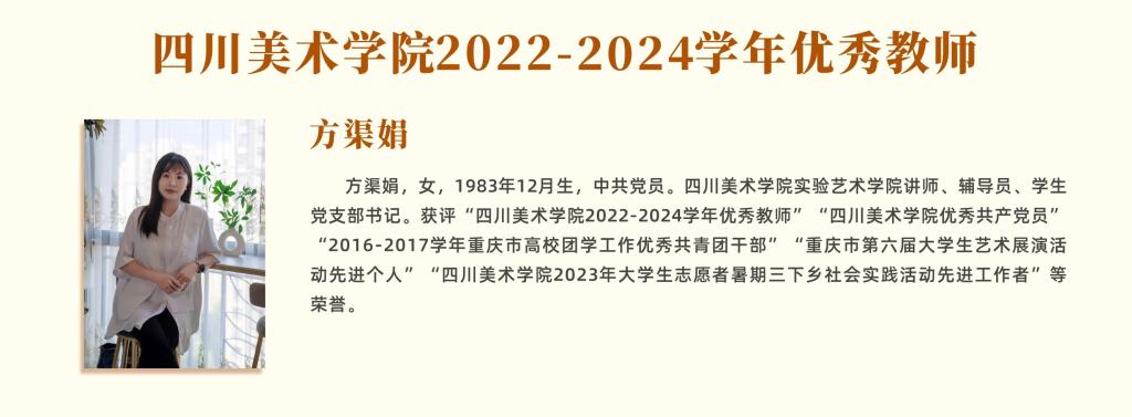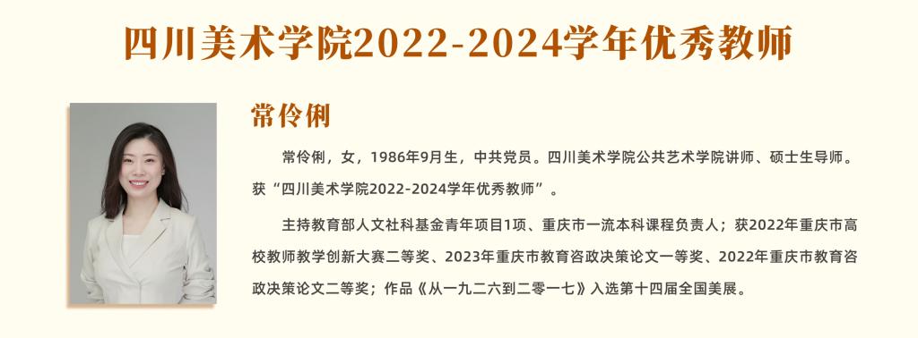 在各类教学比赛中屡获佳绩,荣获重庆市级教学创新大赛三等奖、重庆市级青教赛优秀奖和2023年四川美术学院教学创新大赛“教学明星”等荣誉。