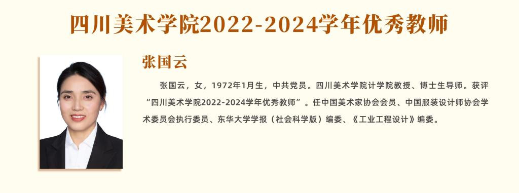 多年来,潜心钻研民族文化与时尚创新,聚焦西南少数民族优秀服饰文化,不懈探索优秀服饰文化的传播,以设计创新助力非遗服饰文化传承与创新。主持国家社科基金一般项目、西部项目共2项,主持并完成重庆市社会科学规划项目1项。出版专著和教材2部,《贵州黎平黄岗侗女服饰考察与研究》《古代侗族女子嫁衣研究》等20余篇论文发表在CSSCI核心期刊。作品分别入选第十三届、第十四届全国美展,第七届北京国际美术双年展,全国工艺美术作品展,国际纤维艺术格鲁吉亚交流展,《薪技艺》孟加拉国际纤维艺术展等。受邀在香港理工大学举办《大美侗衣——张国云民族服饰艺术研究展》个展。