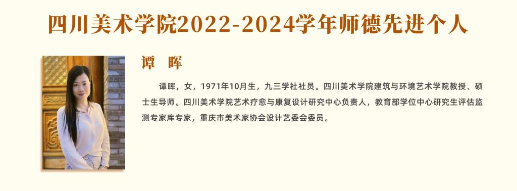 二十余年来,专心致力于“绿色设计与可持续发展”的教育教学与科学研究工作。主持省级教学教改项目“课程思政”专项2项,主持省级课程思政示范课程1门,主持校级研究生课程思政示范课1门。研究生课程《设计思维与绿色可持续》获批全国艺术专业学位研究生教育指导委员会艺术硕士专业学位研究生在线示范课程建设立项。获国家级教学成果二等奖,重庆市教学成果特等奖、一等奖。