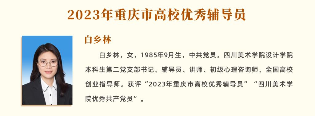 以习近平新时代中国特色社会主义思想为灯塔,深入践行党的教育方针。通过策划和组织一系列主题鲜明、内涵丰富的党团活动与班会,助力学生筑牢理想信念的根基,传承红色基因。所带班级2018级跨媒体工作室和2020级实验艺术一班分别获评重庆市普通高校先进班集体称号。