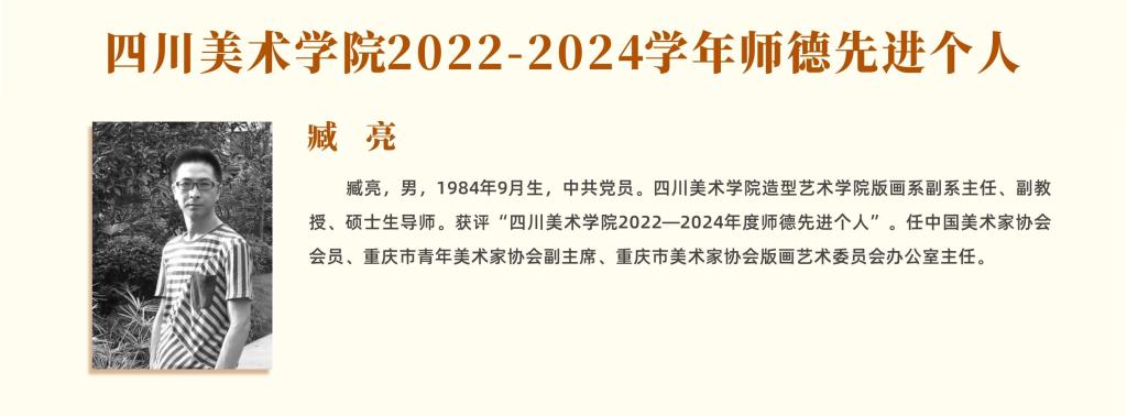 坚守学术规范,始终用“学高为师,身正为范”严格要求自己,用个人言行举止为学生树立良好的榜样。身兼专业教师与班主任工作,坚持潜心教书育人,正向引导学生发展,做学生学习知识的引路人。深入挖掘艺术课程中的育人价值,在继承传统实践类课程教学模式和形态的基础上,精研传统文脉和版画语言。带领学生进行《习近平新时代中国特色社会主义思想版画集》等主题性创作教学,培养学生的社会实践能力。