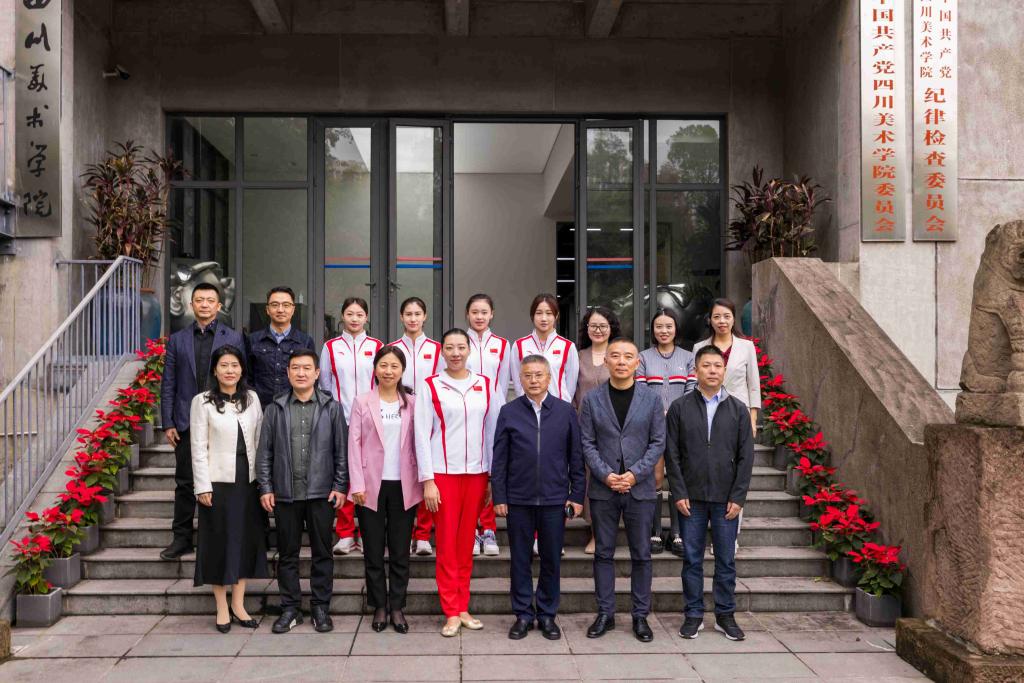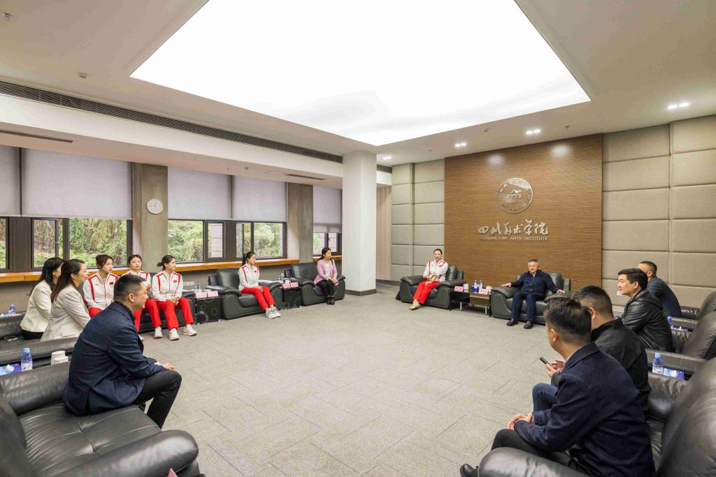 唐青阳对国家艺术体操队一行的到访表示热烈欢迎,并介绍了学校基本情况以及学校在服务国家重大战略发展、服务社会美育等方面的举措和取得的成绩。焦兴涛介绍了我校在近两届全国美展中取得的佳绩以及学校相关情况。孙丹对我校艺术创作及办学成就表示充分认可,并邀请川美师生到国家体育总局参观交流,获取创作灵感。双方表示,未来可在参赛服装设计、训练设备设计等方面开展深入合作,实现强强联合、互利共赢。