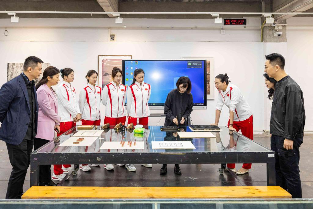 孙丹一行参观了我校版画工作室、美术馆馆藏作品展、收租院陈列馆,以及正在馆内展出的“再遇——中法艺术展”,并在学校老院子与我校教务处、设计学院服装艺术设计系、产品设计与工业设计系相关负责人就专业艺术创作、艺体融合发展等方面进行了深入交流。