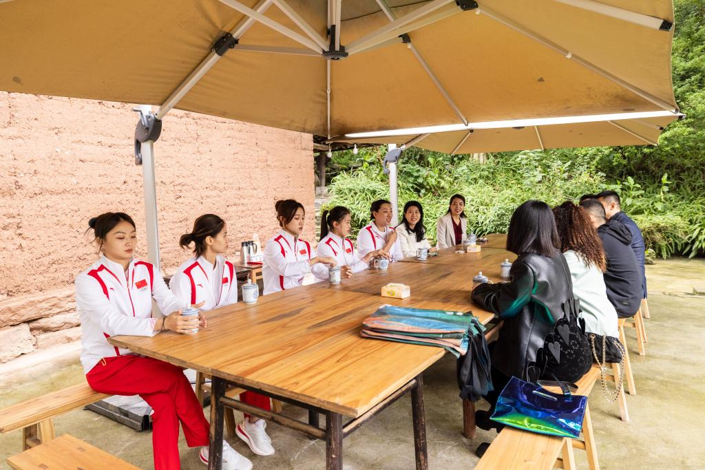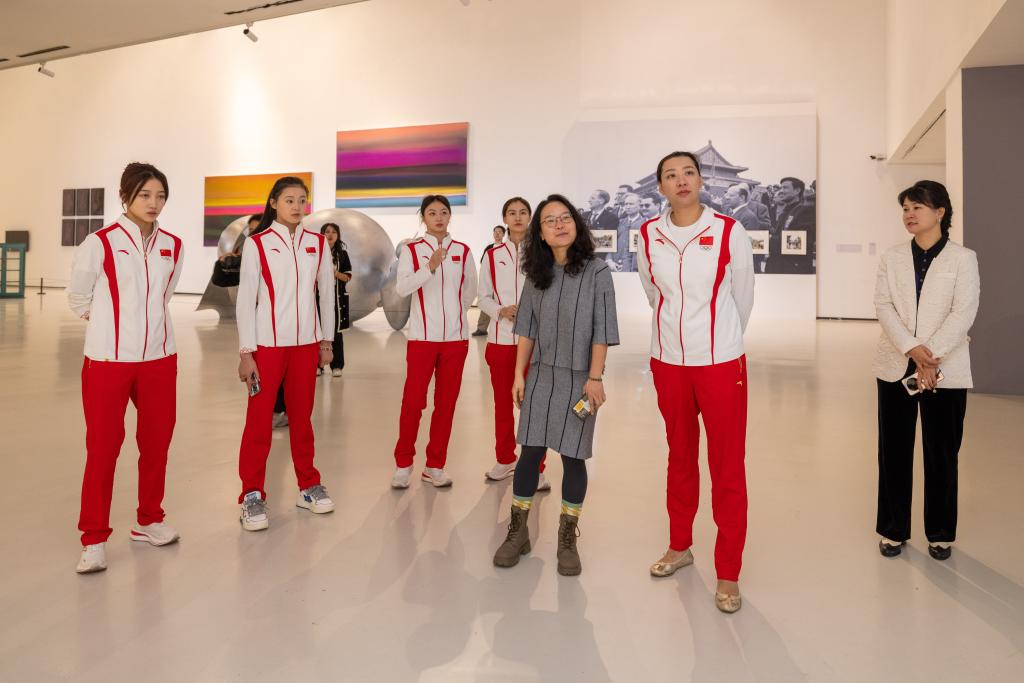 10月21日上午,国家体育总局国家艺术体操队主教练孙丹,国家艺术体操队队员、巴黎奥运会艺术体操集体全能冠军丁欣怡、郭崎琪、郝婷、黄张嘉洋一行,在沙坪坝区人民政府副区长王晶、沙坪坝区文化旅游委书记汪黎黎、沙坪坝区文化市场综合行政执法支队政委封元晓佳、沙坪坝区文化旅游委副主任任宏伟、重庆市艺术体操队总教练徐亚丁的陪同下,到我校参观交流。学校党委书记唐青阳、院长焦兴涛、副院长王朝刚会见了奥运冠军一行。
