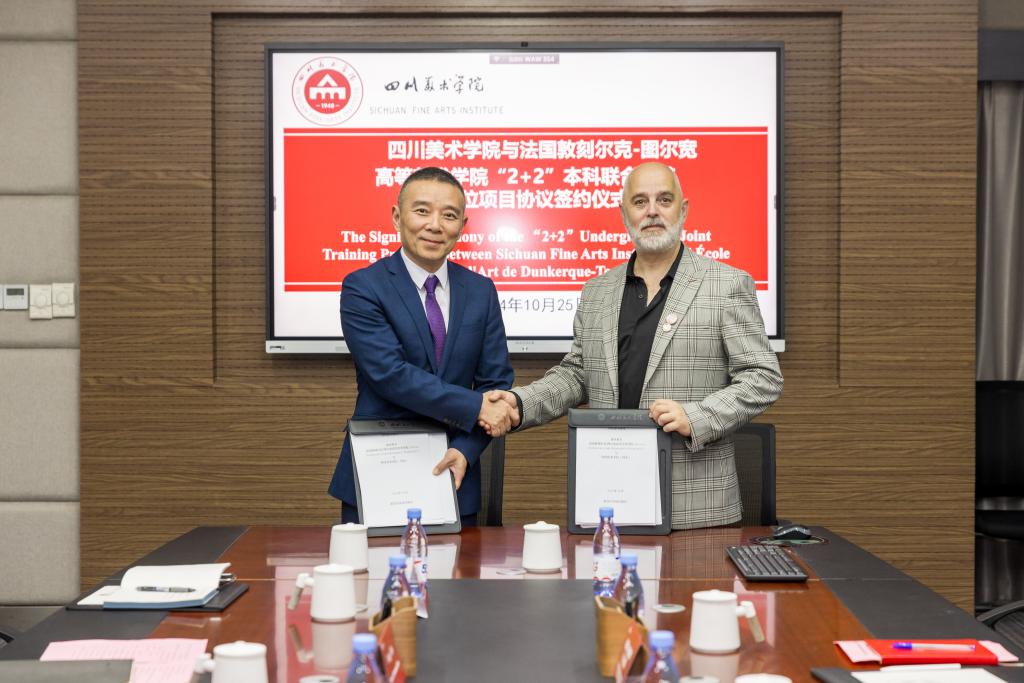 此次签约仪式上正式启动了两校联合培养项目,参与项目的学生在完成我校和法国敦刻尔克-图尔宽高等美术学院双方约定的培养流程后,可以同时获得四川美术学院美术学本科学位和法国敦刻尔克-图尔宽高等美术学院国家造型表现学士学位。