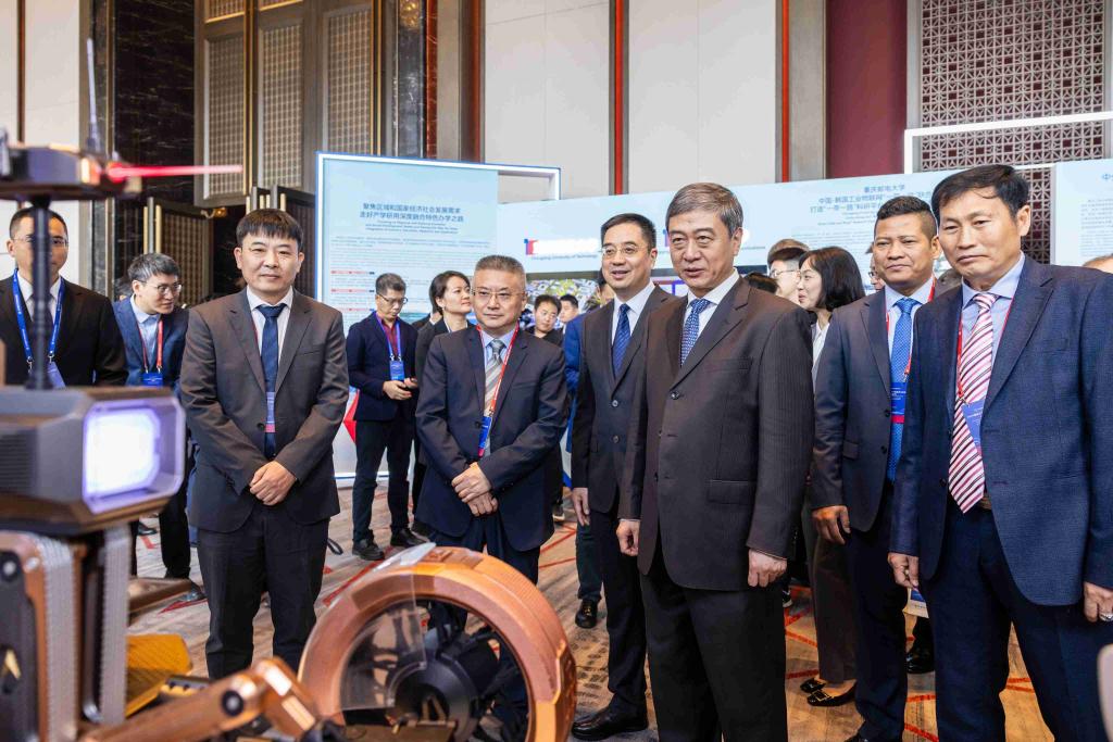 11月10日上午,校领导参加国际产学研用合作会议(重庆)主会场活动,学校党委书记唐青阳、副院长段胜峰向教育部与重庆市领导介绍我校产学研用标志性成果,展示我校设计的人机联合月面移动科考站。我校与美国亚沃(上海)企业管理咨询有限公司在主会场签署数智化创新设计产学研用协议。我校特聘教授、马来西亚科学院院士张纹通参加主会场对话环节,介绍了我校与马来西亚大学未来在设计领域产学研用方面的合作。