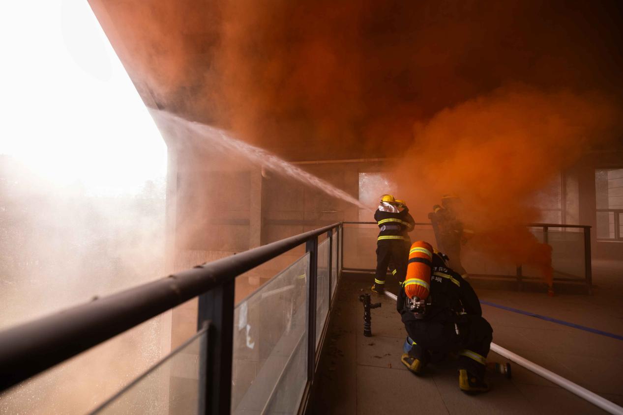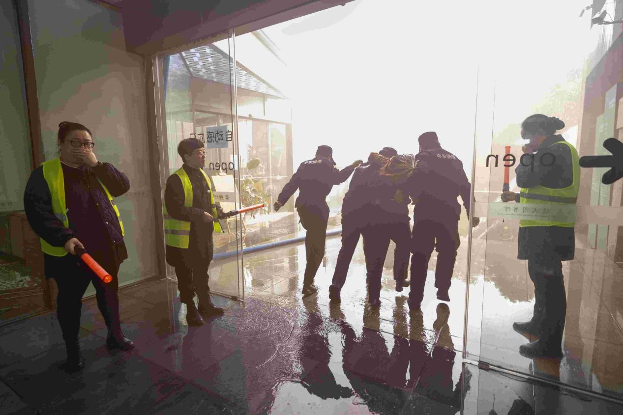 全校师生代表、各二级单位负责人共300余人在行政楼图书馆参加消防安全实地演练。