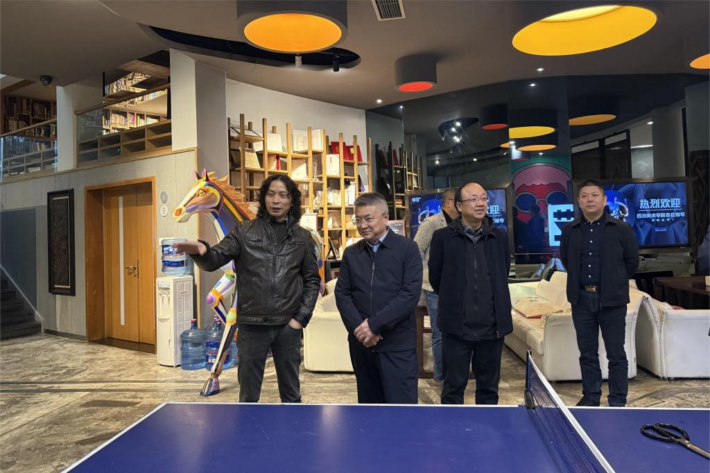 11月24日,唐青阳一行先后走访调研了成都黑蚁文化创意集团股份有限公司和成都理想画室,分别了解了两家校友企业的整体运营、业务布局以及师资队伍建设、教育成果、参与社会公益等情况。唐青阳一行与校友企业围绕人才培养、就业指导、学术研究、美育服务等领域的深入合作,进行了富有成效的交流讨论,达成了初步的合作意向。