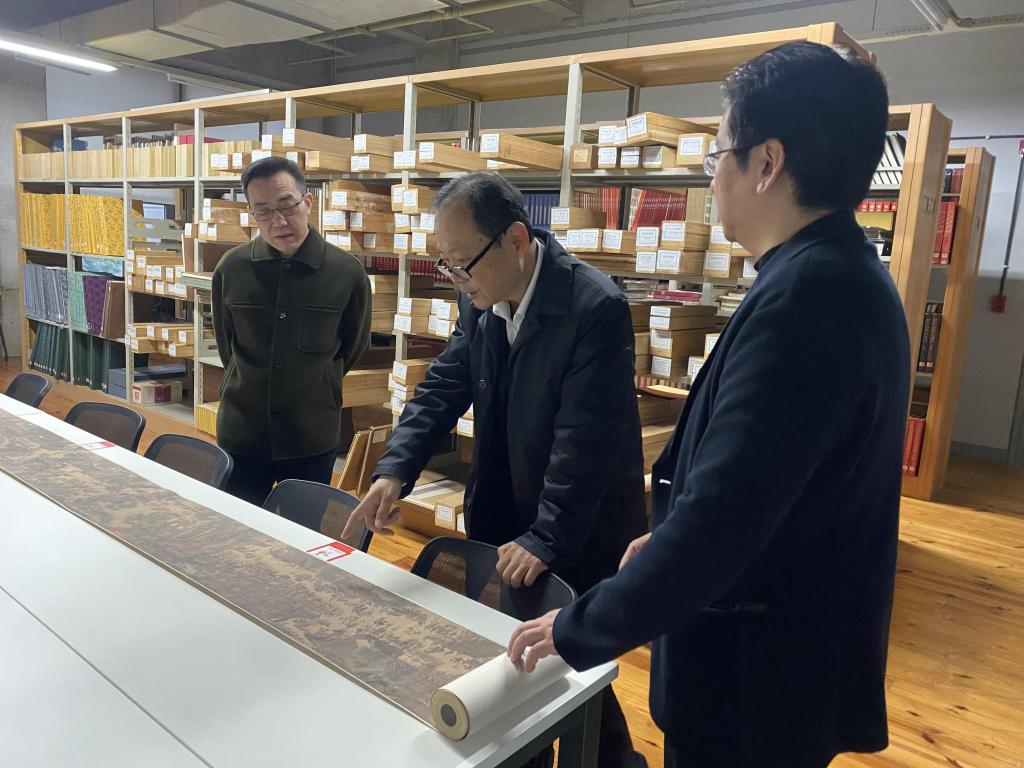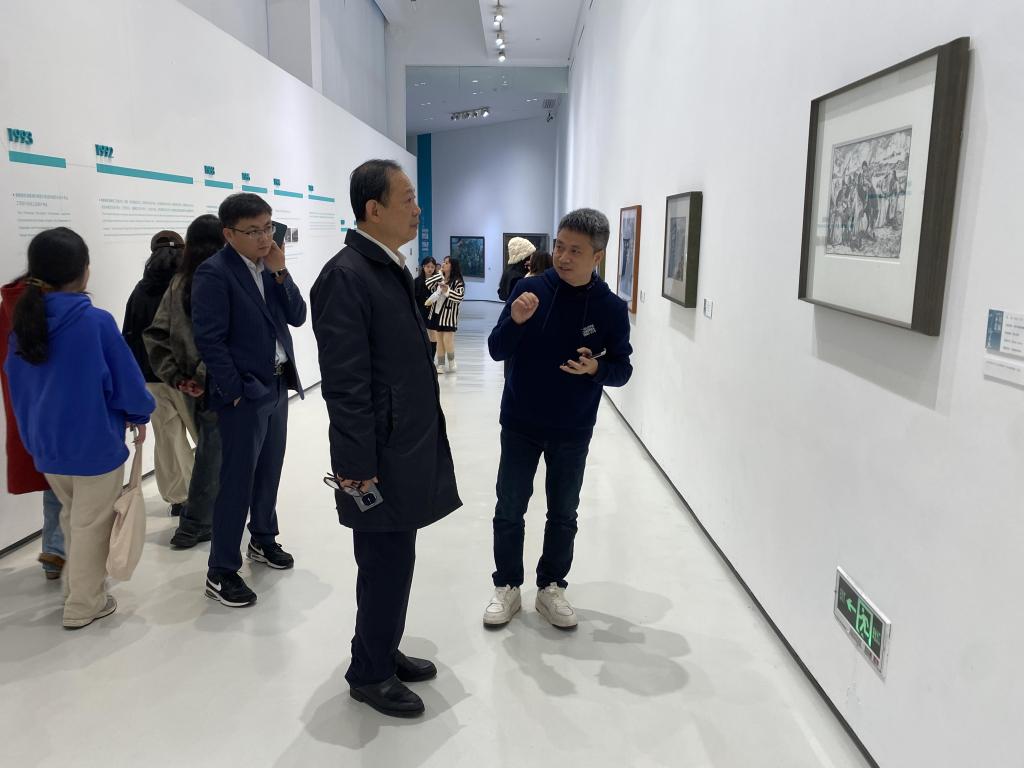 薛峰实地考察了校园环境建设,并在美术馆馆藏展厅、收租院陈列馆、图书馆等地,调研了我校教学科研创作成果。