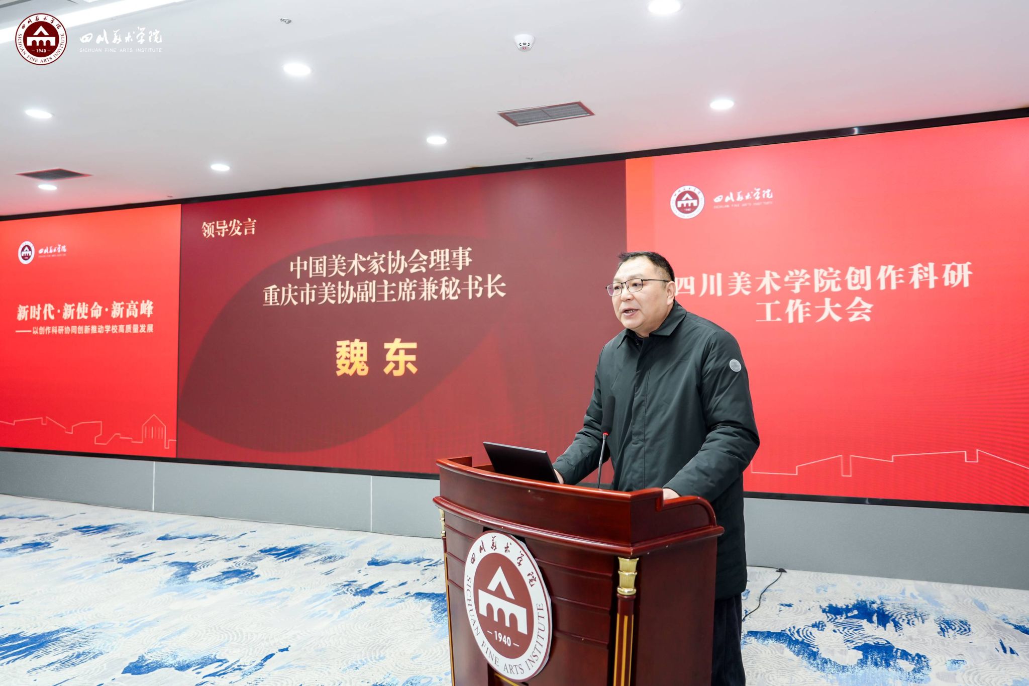 中国美术家协会理事、重庆市美协副主席兼秘书长魏东指出,川美创作科研工作大会的成功举办不仅是对近五年来川美创作科研工作的全面总结,更承载着我们共同为全市培养、引领美术创作骨干、青年美术人才勇攀艺术高峰的期许。