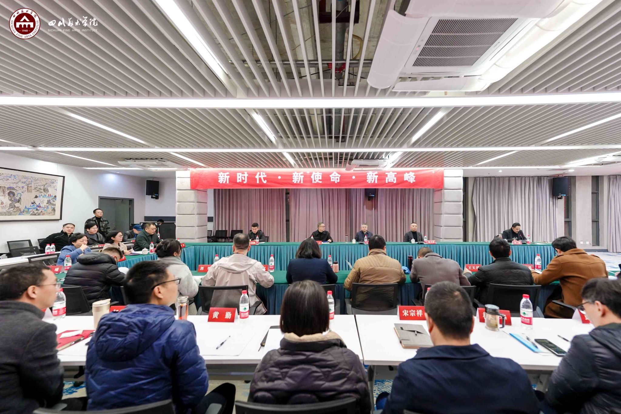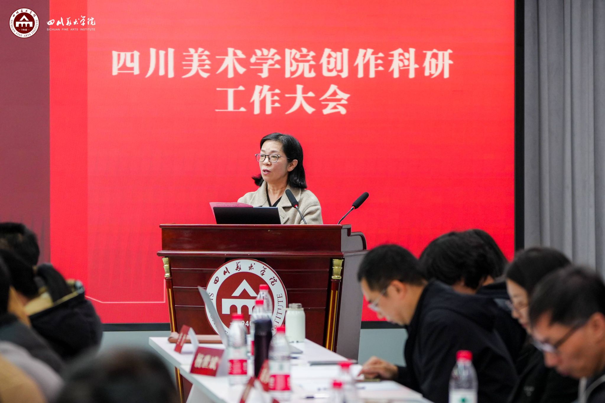 焦兴涛指出,学校坚持以习近平新时代中国特色社会主义思想为指导,全面贯彻落实党的教育方针和文艺方针,提出了“新时代·新艺术”的创作科研发展理念,坚持“以人民为中心”的价值导向、遵循艺术创作与科学研究的基本规律、服务“双一流”建设目标,以创新驱动服务国家战略和社会发展,促进产学研深度融合,推进实施具有川美特色的“有组织科研”工作,开创出了优势与特色鲜明、高峰凸显与高原崛起、国内与国际声誉显著的创作科研协同发展新局面。同时,也要清醒认识创作科研工作中存在的突出问题。